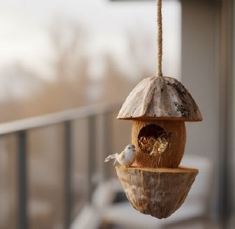 Eco-friendly, natural, and cozy. Crafted from real coconut shells, this bird nest provides a safe and stylish home for small birds. Perfect for gardens, balconies, or indoor décor. Sustainable living meets wildlife care.