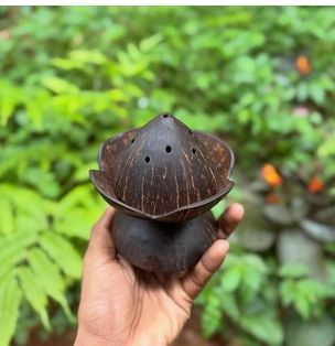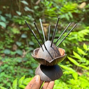 Eco-friendly elegance meets tradition! Crafted from natural coconut shell, this dhoop stand adds a rustic charm to your space while safely holding your incense. Perfect for a serene, fragrant ambience.