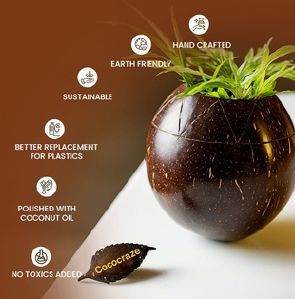 Eco-friendly elegance for your home and garden. Handcrafted from natural coconut shells, each pot adds arustic charm while promoting sustainable living. Perfect for indoor plants, herbs, or succulents. Lightweight, durable, and naturally biodegradable — style meets nature effortlessly.